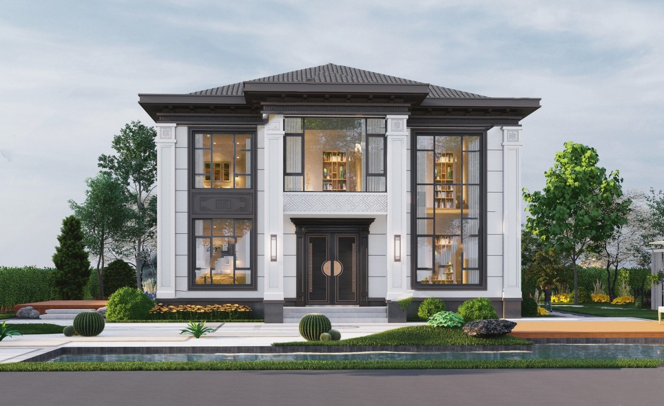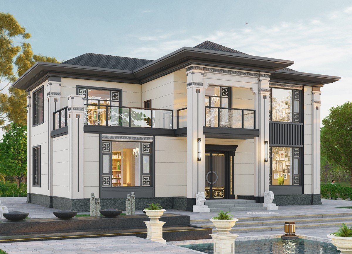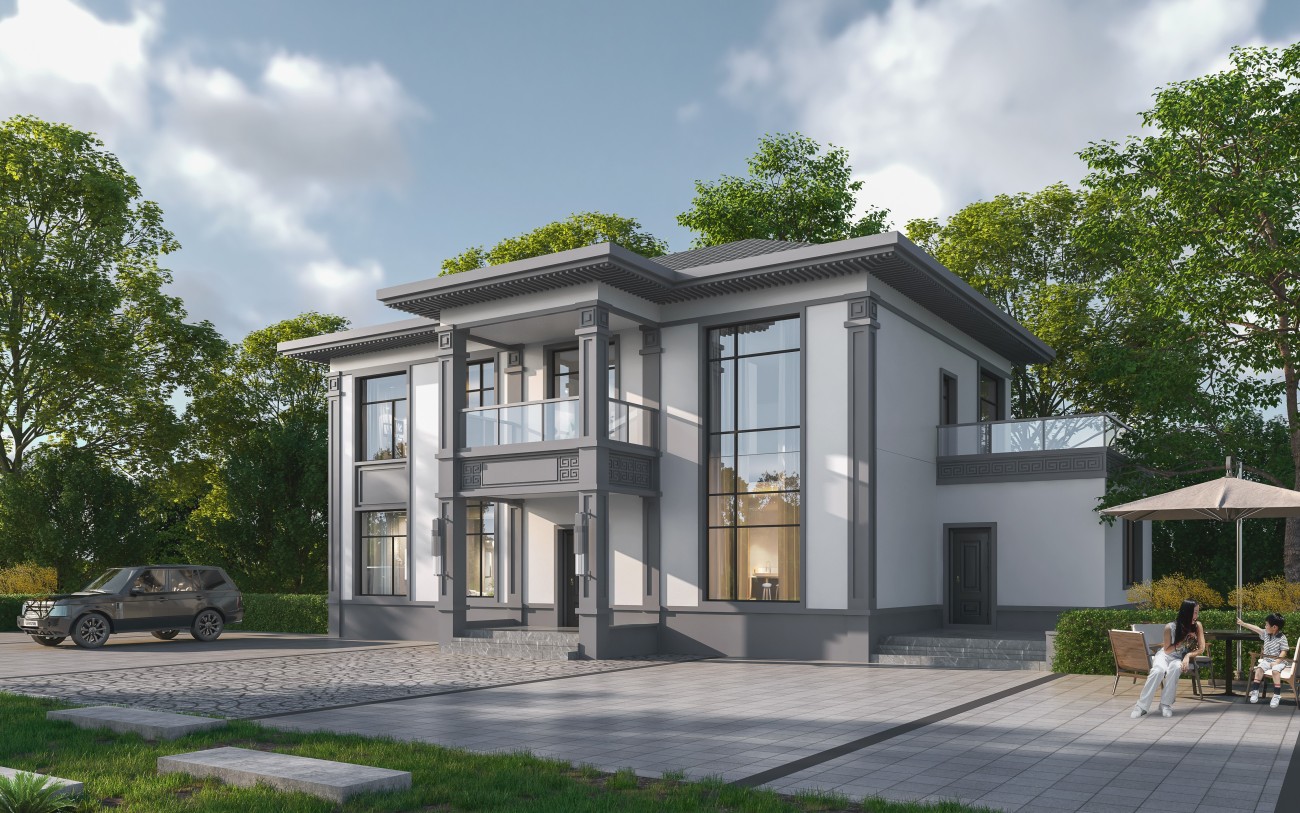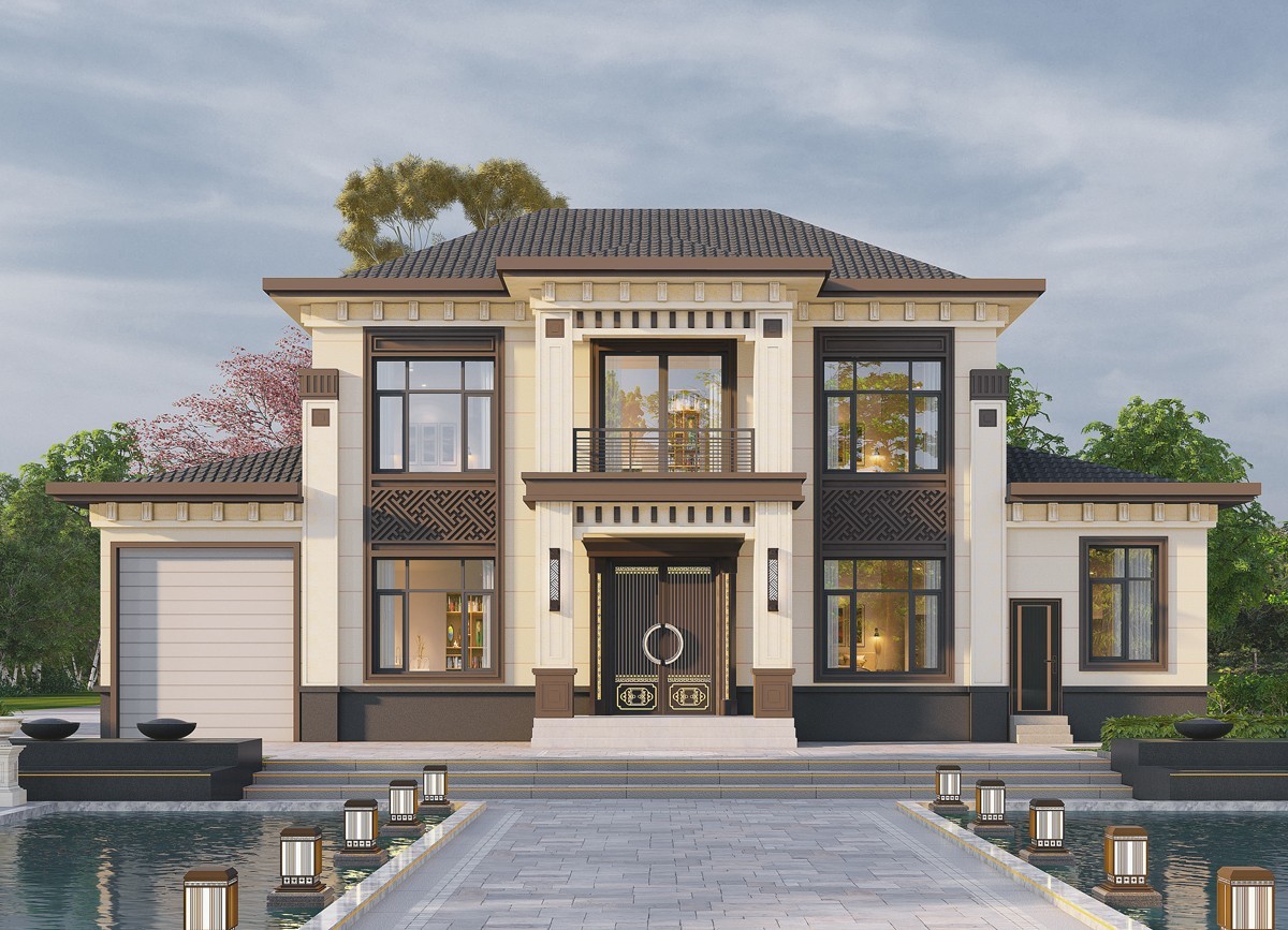 乐东011 两层新中式(15.43x12.66米)-【易设计】