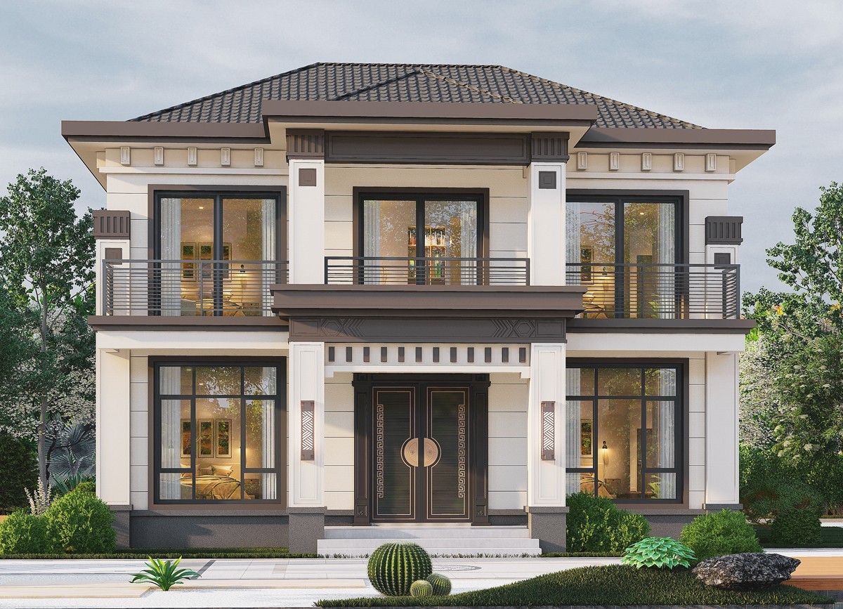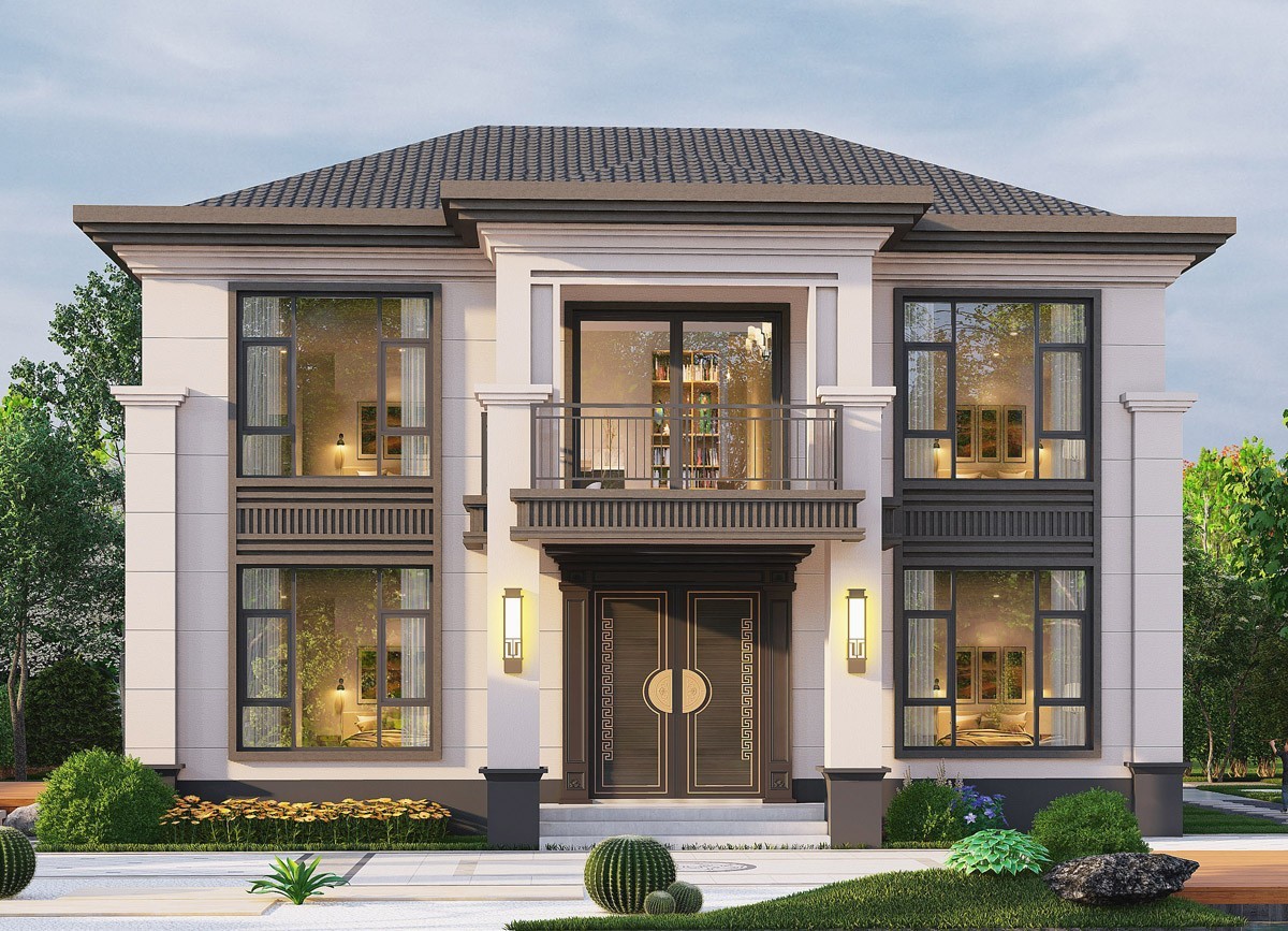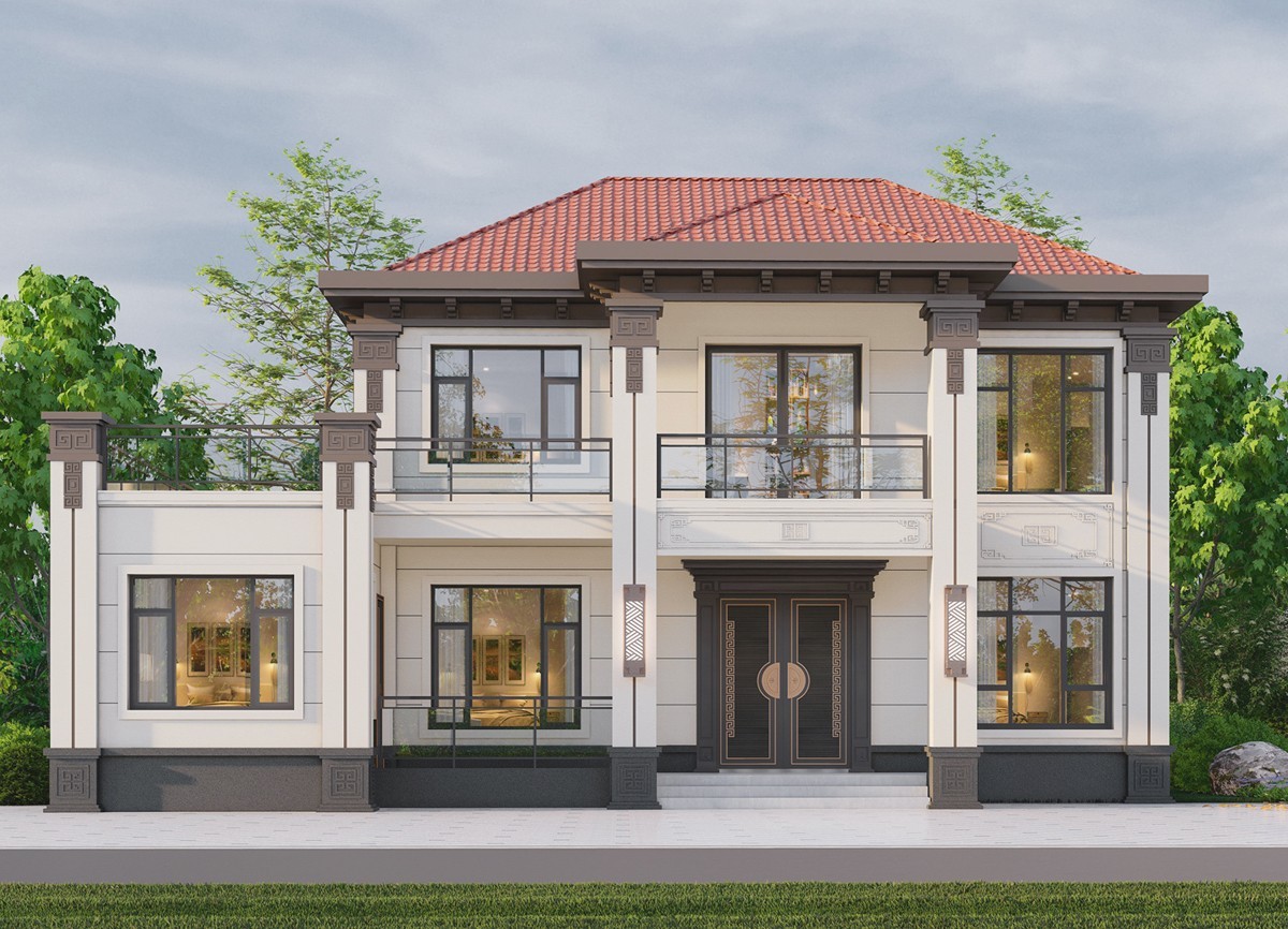 乐东005 两层新中式(11.36x11.76米)-【易设计】